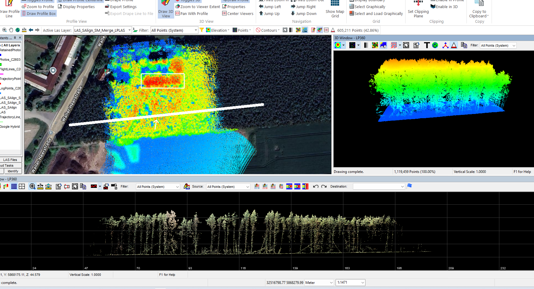 Auf der Basis von photogrammetrischen Analysen bieten wir die Durchführung verschiedener geologischer Maßnahmen an. Unsere Drohne ist mit einem hochwertigen LIDAR – Scanner TrueView 435 ausgestattet. In Verbindung mit der Datenverarbeitungssoftware (LP 360) können wir Flugdaten auswerten, mit deren Hilfe wir verschiedene Modelle in 2D und 3D entwickeln können – wie zum Beispiel hochaufgelöste einzelne Luftbildaufnahmen von Gelände und Objekten sowie komplexe Geländemodelle. Folgende Maßnahmen bieten wir in Form von digitalen Modellen (DGM) in 2D/3D, sowie Höhenmodelle und Orthofotos an: